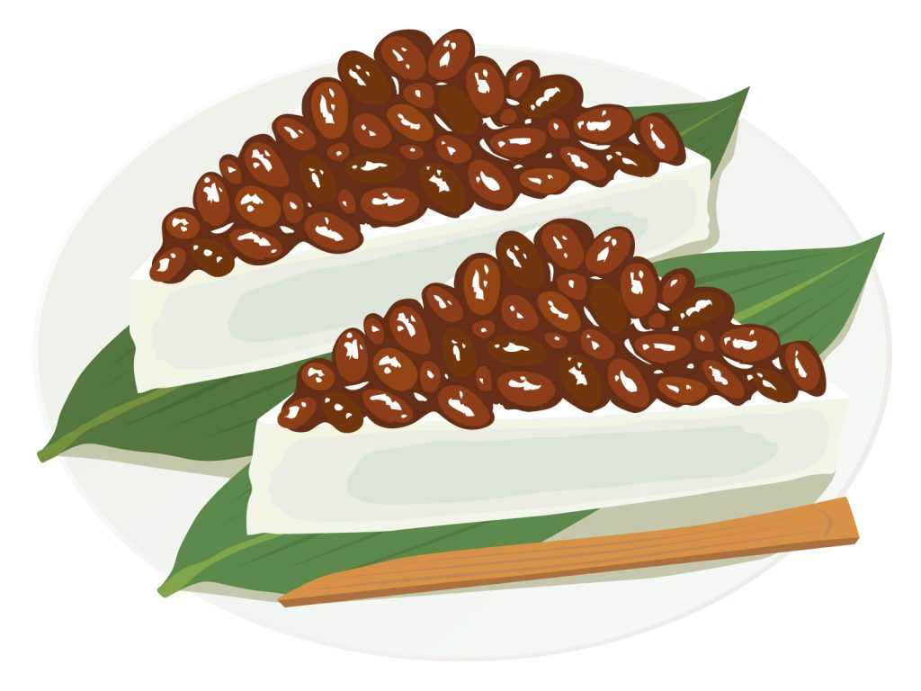 ほんのり甘い白色のういろの上に小豆が散らした三角形の涼やかな和菓子